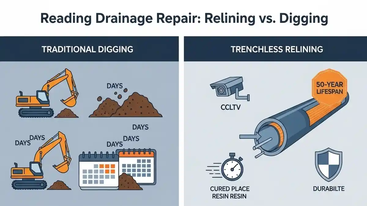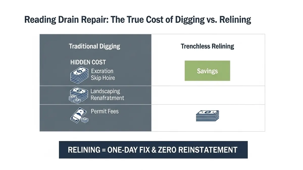 Avoid costly, messy excavations. Compare Cobham Drain Relining vs Digging to save your home, time, and money with our expert, minimally invasive, and durable no-dig repair solutions for local drains.